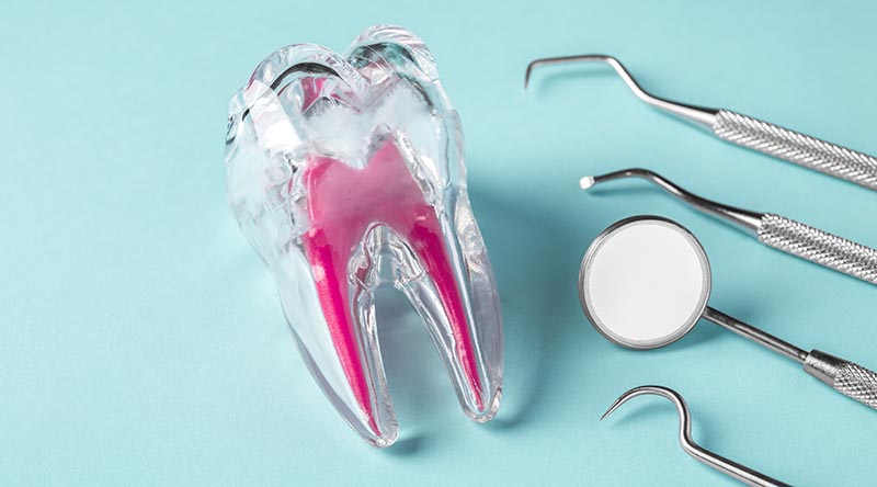 Im Inneren jedes Zahnes befindet sich ein feines System aus Nerven und Blutgefäßen, das sogenannte Zahnmark. Wird dieses Gewebe durch Karies oder Bakterien entzündet, kann es starke Schmerzen verursachen. Bei einer Wurzelbehandlung wird das entzündete Gewebe aus dem Zahn entfernt. Anschließend reinigt und desinfiziert der Zahnarzt die feinen Wurzelkanäle gründlich. Zum Schluss werden die Kanäle dicht verschlossen, damit keine neuen Bakterien eindringen können. Danach hat der Zahn zwar keinen lebenden Nerv mehr, kann aber weiterhin stabil im Kiefer bleiben und seine Funktion erfüllen.